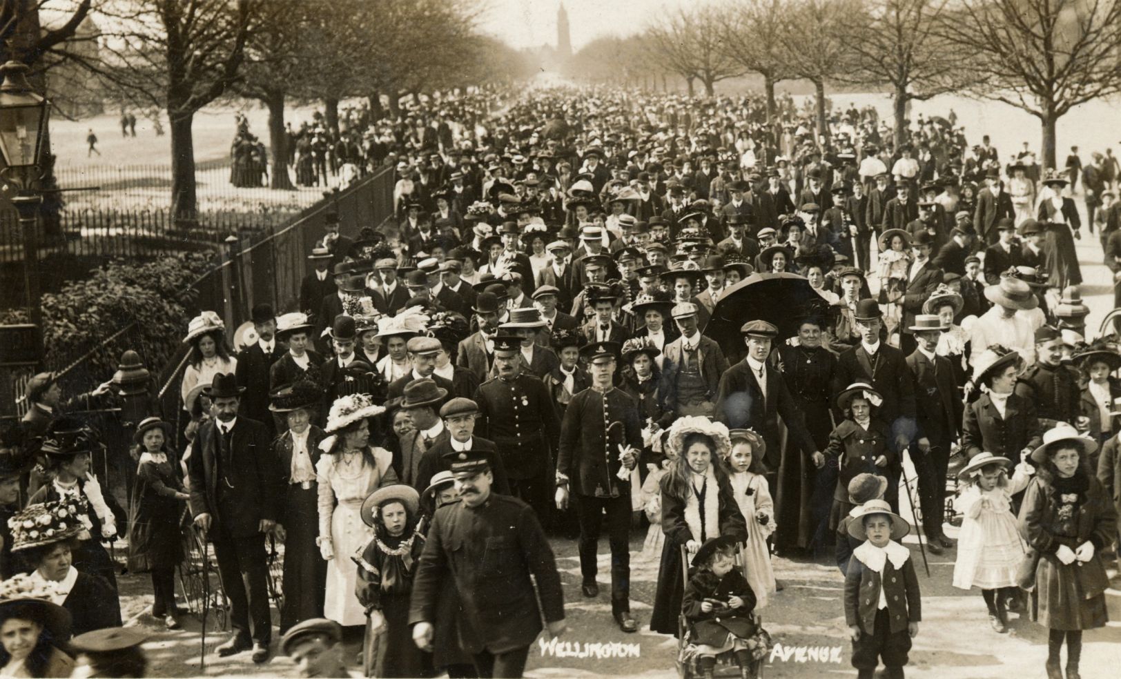 In the 1890s naming of the Garrison’s road and barracks, the road which ran east-west in a straight line from the front of Waterloo Barracks to the Garrison Church of All Saints was also given a new name. Previously known simply as “The Avenue” or “Avenue Road”, this road now became “Wellington Avenue”. For many years in the late nineteenth and early twentieth centuries Wellington Avenue became a popular destination for the people of Aldershot, especially on Sundays when crowds would turn out to watch the colourful church parades to the Garrison Church. Afterwards they would stay to walk along this elegant avenue lined with chestnut trees, enjoying the company, the ambience, and occasionally also being entertained by the regimental bands who would give static performances after the formal parades were over. Wellington Avenue was another victim of the post-war rebuild, which took it on a new line from the Hospital Hill junction to the roundabout on the Farnborough Road, cutting off the part of the avenue leading to the Royal Garrison Church. This section was renamed Willems Avenue and is now a rather neglected stretch of road behind Tesco’s supermarket.