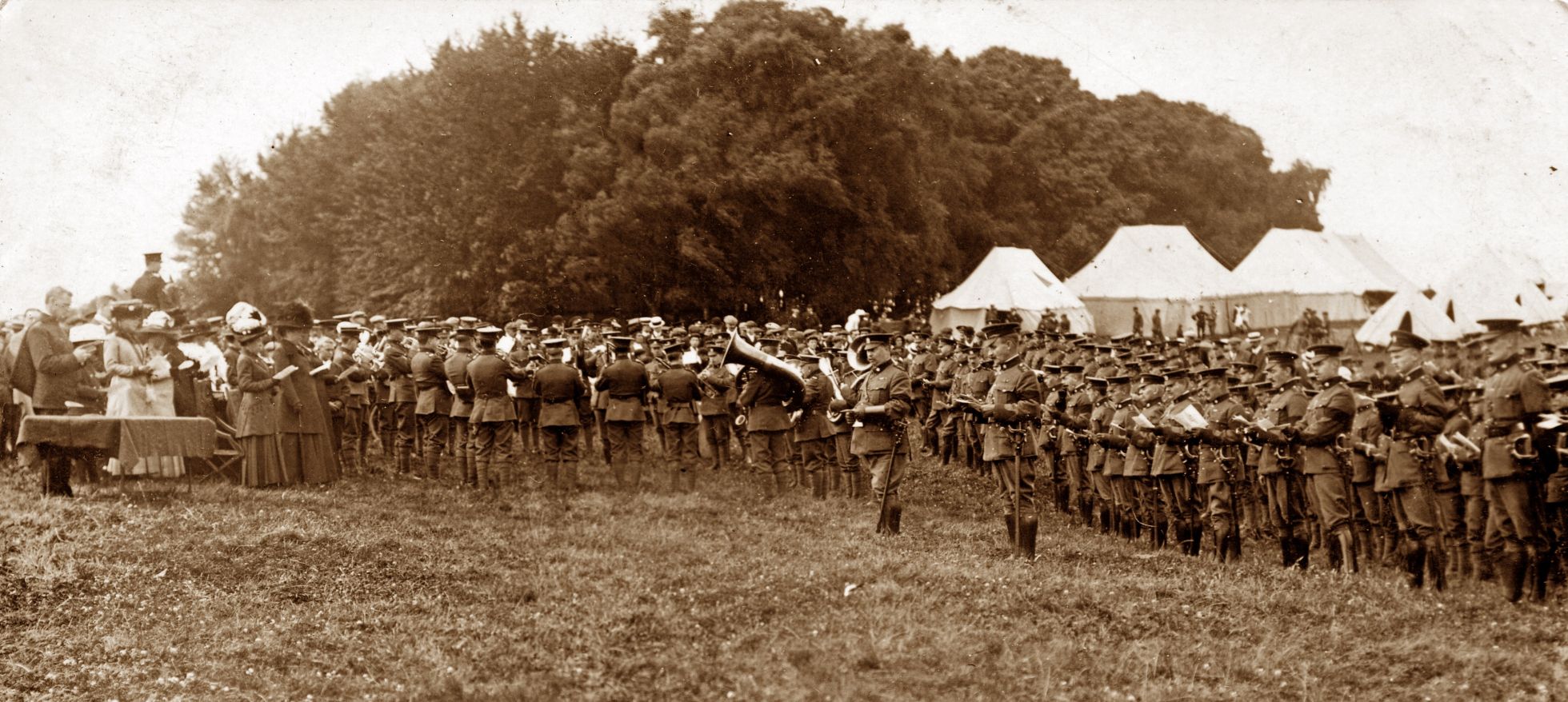 1910 was a significant year for the Queen's Own Rifles of Canada, as it marked the fiftieth anniversary of the founding of the regiment in 1860. The regiment had fought in the Fenian Raids of 1866 and in the North-West Rebellion of 1885. With his immense pride in his regiment, and memories of his earlier visits to Britain, Sir Henry Pellatt decided to mark the golden jubilee of the Queen’s Own Rifles by bringing them to England to take part in the autumn Army manoeuvres.