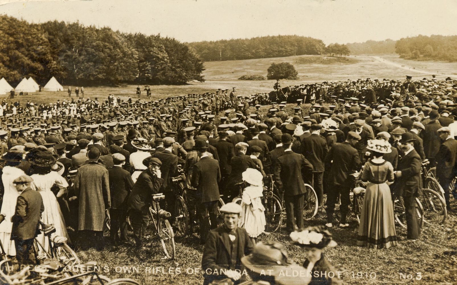 It is well-known that Aldershot was the centre for the Canadian Army Overseas throughout the Second World War, and the links forged during that time remain strong to this day. However, the units which arrived over the winter of 1939-1940 were not the first Canadian soldiers to come to Aldershot, for some 29 years earlier the Queen’s Own Rifles of Canada had been honoured guests of the town.