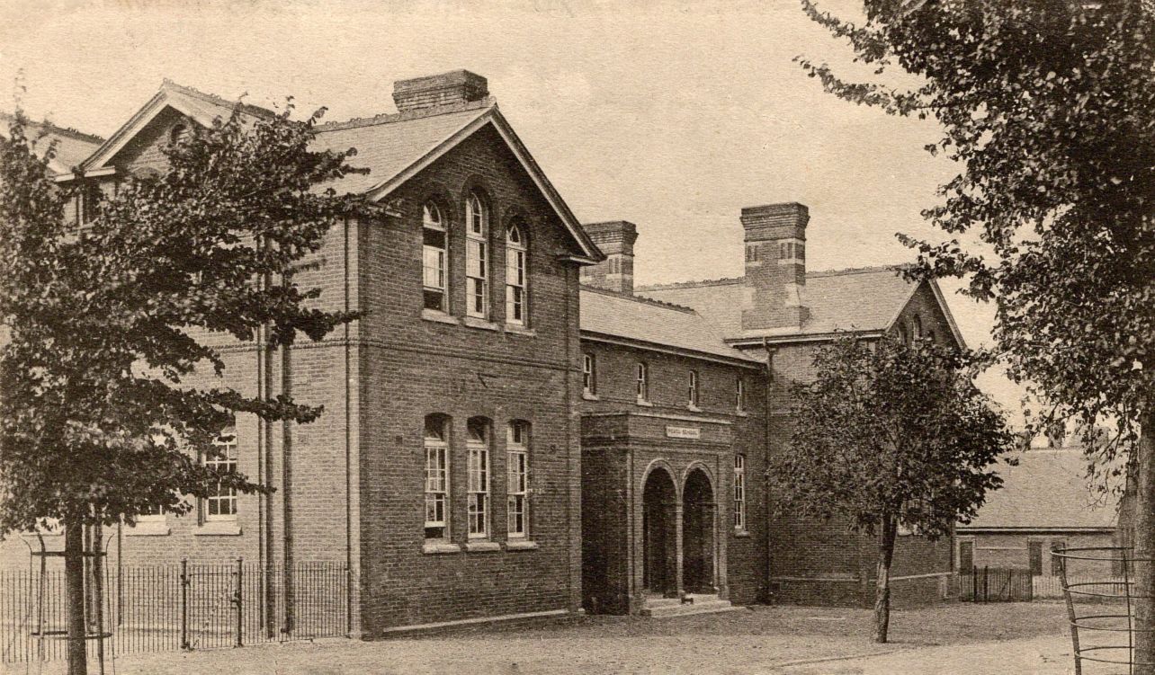 The Marlborough School, and the adjacent Clocktower school, were built as part of the reconstruction of Aldershot Garrison in the 1890s, when the wooden huts of the old Camp were replaced with new brick buildings. The Marlborough School was built as an infants’ school with seats for 328 children, while the Clocktower was an “Adult and elder children’s school”, with seats for 270 pupils. The designation of this school reflects the practice of using the elder children’s schools also for soldiers’ education after the children had finished for the day.