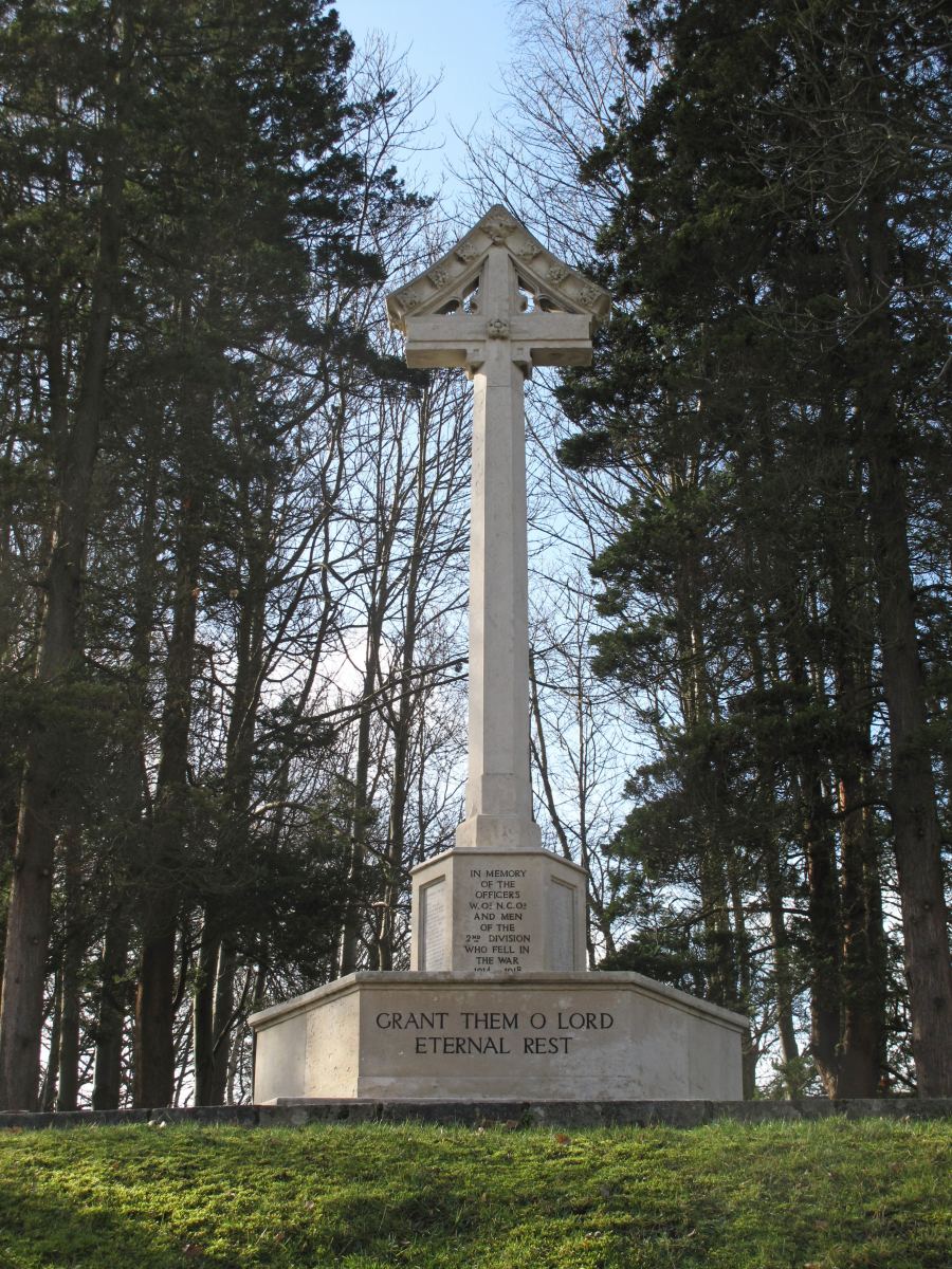 The 1st Division’s memorial in Aldershot is the remarkable Somme Cross in the south porchway of the Royal Garrison Church, and the story of this most poignant relic was published in the Aldershot Garrison Herald issue 008, June / July 2016 (also available on the Friends of the Aldershot Military Museum’s website at https://www.friendsofthealdershotmilitarymuseum.org.uk/garrison.008.html).