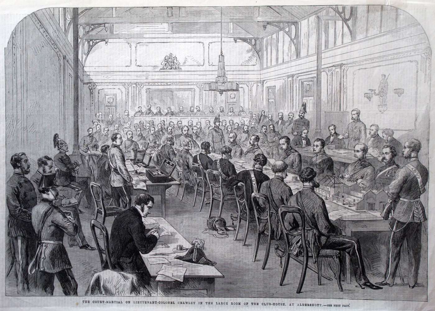 In 1863 one of the more unusual events was the court-martial of Lieutenant-Colonel Thomas Crawley, commanding officer of the 6th (Inniskilling) Dragoon Guards. At the time the regiment was stationed in India, and Crawley was accused of imposing unnecessarily harsh conditions on the Regimental Sergeant Major while he was under arrest, causing his death. The story became such a huge national scandal that the War Office decided the court-martial had to be a public trial in England. The main room of the Club House became the court-room, two-thirds of its area allotted to the court and the remainder to the press and public. Most of the witnesses, including 12 officers, 61 NCOs and privates, one woman and three Indians, had to be brought back from India. For the duration of the trial, Crawley was given accommodation in the Club House.