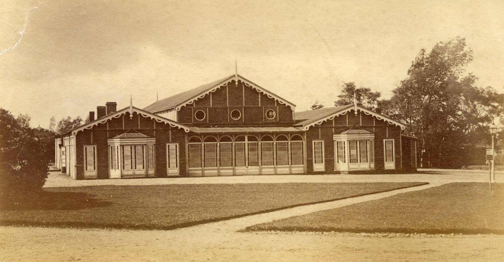 The demand for a club came from the officers who were posted into the Camp in its early days, when the usual officers’ accommodation was a single room in a wooden hut, dining was in a mess hut, and there was no provision for social or recreational activities. The officers petitioned General Knollys, General Officer Commanding, for a suitable club, who in turn obtained the permission of the Commander-in-Chief. The club was built as a commercial venture by entrepreneur Thomas Stapleton, near the Farnborough Road. Construction work began on 28 July 1855 and only one month later it was ready to receive the first furniture and fittings. The Club House was a large single-storey building made of wood and corrugated iron, painted green and white. Inside were a dining room, reading room, coffee room, fencing room, three billiard rooms, a card room, a smoking room, and offices. The total cost was some £4,000.